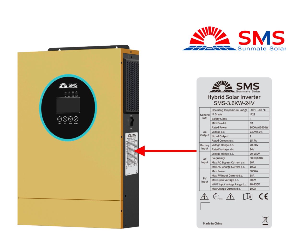 Sunmate SMS 3.6KW-24V Hybrid Solar inverter (MPPT 100A 5000W)