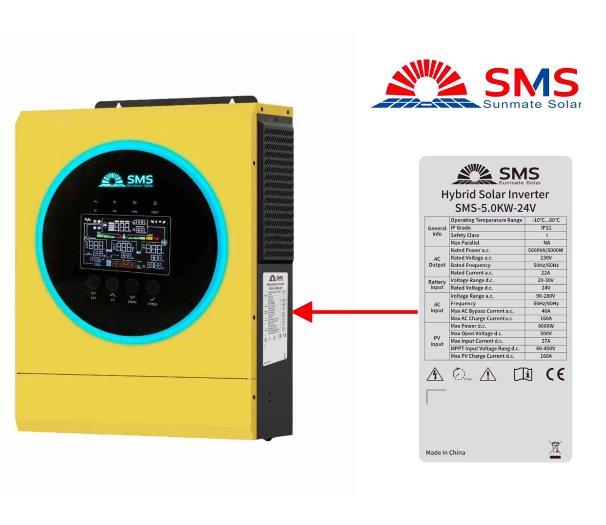 Sunmate SMS 5KW-24V Hybrid Solar inverter (MPPT 160A 9000W)